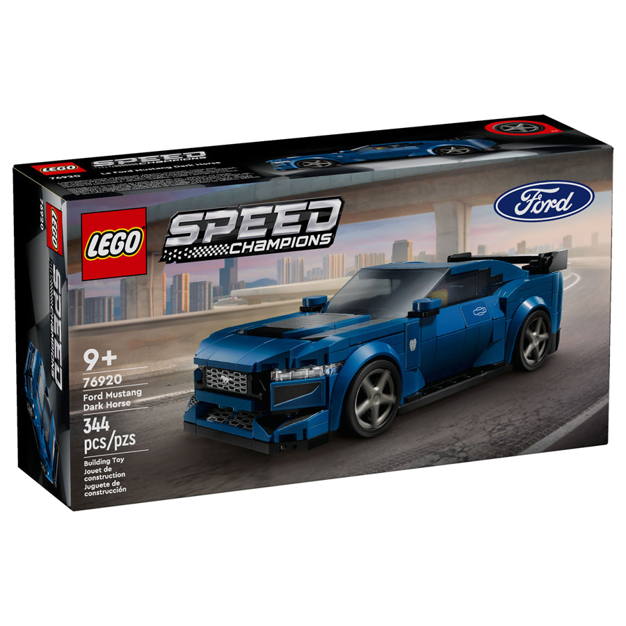 The LEGO® Speed Champions Ford Mustang Dark Horse Sports Car (76920) toy vehicle is a faithful brick-built version of the powerful real-life model from the iconic American car maker. Kids aged 9+ will love to collect, build, display and play out action with this blue toy car. The Ford Mustang toy car features several authentic design features: the rear wing, distinctive grille, headlights, tailpipes, Ford logos and detailed interior with a gearshift and dashboard. The buildable LEGO® car also comes with a removable roof and a driver minifigure wearing a Dark Horse hoodie for kids to place behind the wheel and play out exciting action. Speed Champions building sets let kids and passionate car fans build replica versions of some of the world's most iconic vehicles. They will be thrilled to create high-quality models from LEGO® bricks, featuring distinctive details. Each car toy can be created with the LEGO® Builder app, which guides you and your child on an easy and intuitive building adventure.